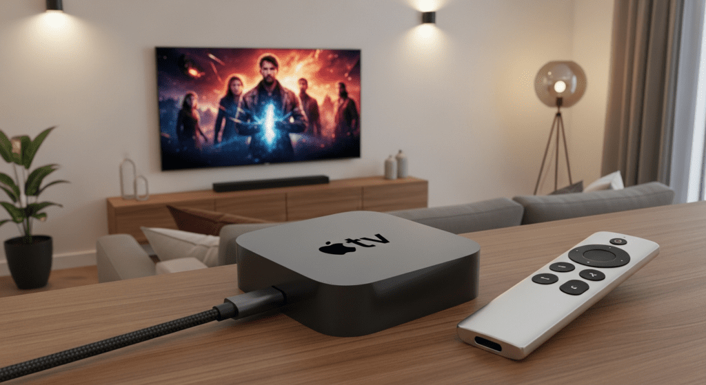 The device is small enough to be discreetly placed behind a television or on a media shelf, yet it packs powerful internal components. With its robust build quality and sleek design, Apple TV 4K has become a symbol of premium streaming hardware, complementing other Apple products in style and performance.